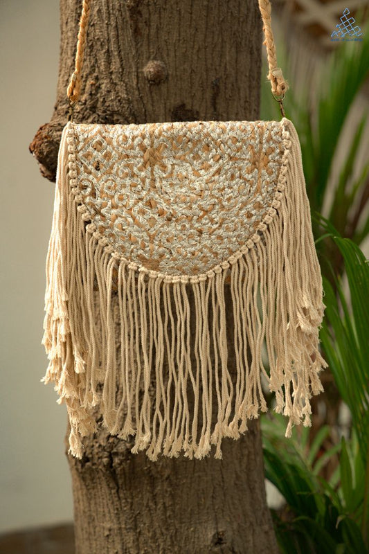 Fringe Flair Jute Sling Bag