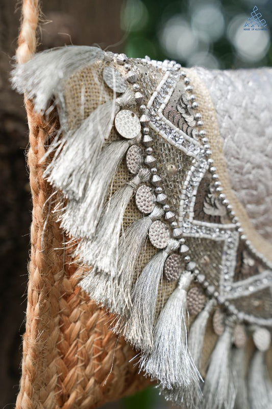 Silver Cascade Jute Sling Bag